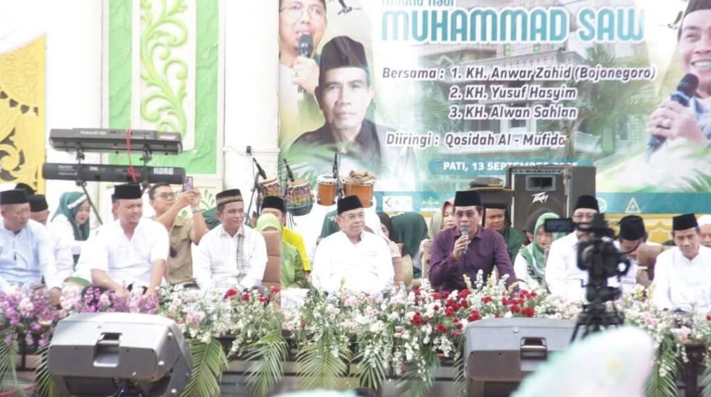 Pati, JejakNusantara.net || Bupati Pati, Sudewo, menghadiri Pengajian Akbar dalam rangka Peringatan Maulid Nabi Muhammad SAW Tahun 2025 yang digelar di Desa Godo, Kecamatan Winong, Sabtu (13/9/2025).