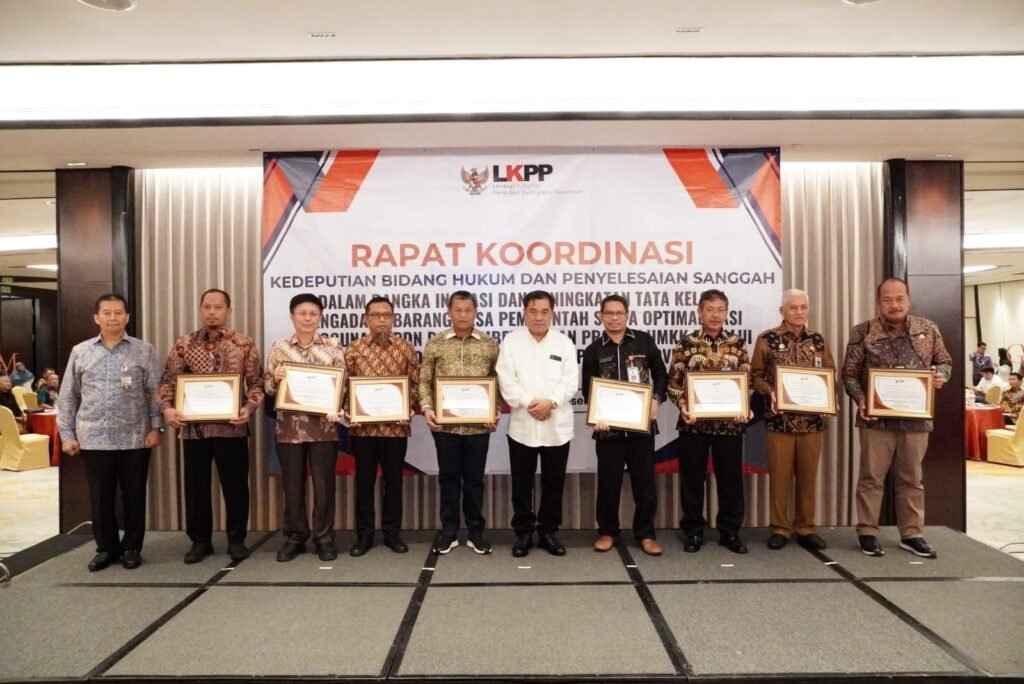 Di tempat dan waktu yang sama pula, Penjabat (Pj) Bupati Pati Sujarwanto Dwiatmoko pun hadir mewakili Sekda Provinsi Jawa Tengah untuk menerima penghargaan bagi Pemprov Jateng, sekaligus mengikuti Rapat Koordinasi Kedeputian Bidang Hukum dan Penyelesaian Sanggah terkait Inovasi dan Peningkatan Tata Kelola Pengadaan Barang/Jasa Pemerintah serta Optimalisasi Penggunaan PDN dan Pemberdayaan Produk Usaha Mikro Kecil dan Koperasi (UMKK) melalui Konsolidasi Pengadaan dan Probity Advice.
