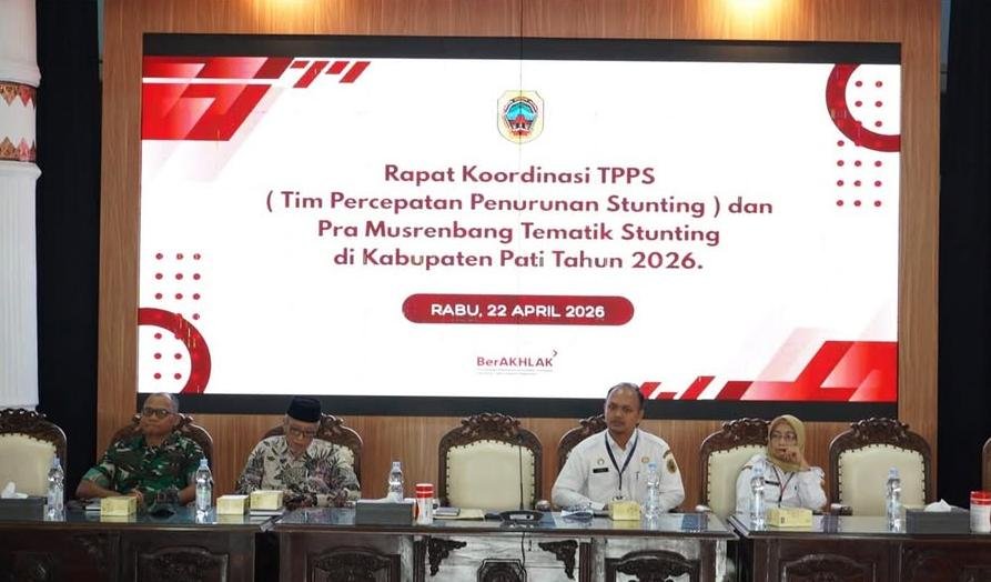 PATI, JejakNusantara.net || Bertempat di Pendopo Kabupaten Pati, Pemerintah Kabupaten Pati menggelar Rapat Koordinasi Tim Percepatan Penurunan Stunting (TPPS) sekaligus Pra Musrenbang Tematik Stunting Tahun 2026, Rabu (22/4/2026). Kegiatan ini menjadi momentum penting dalam memperkuat komitmen bersama guna menurunkan prevalensi stunting secara terarah dan berkelanjutan.