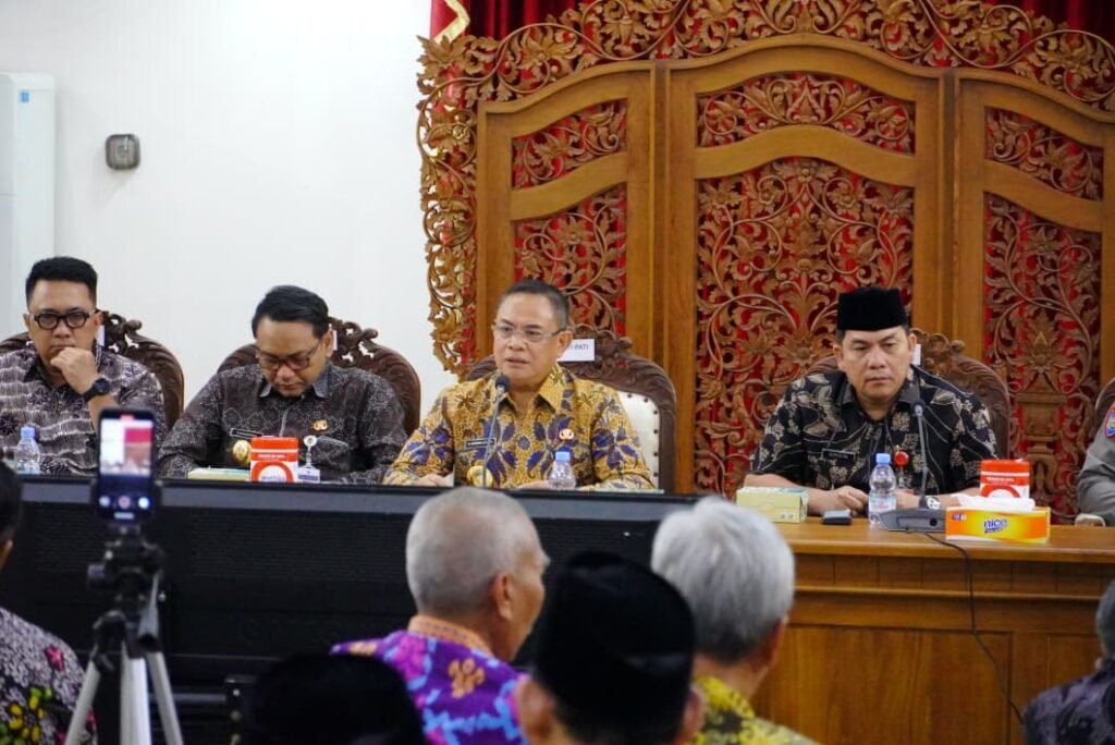 Pati, JejakNusantara.net || Bupati Pati, Sudewo, menerima asistensi, Monitoring dan Evaluasi (Monev) dari Kementerian Dalam Negeri Republik Indonesia di Ruang Pringgitan, Pendopo Kabupaten Pati. Kegiatan ini turut dihadiri Wakil Bupati Pati, Forkopimda, para camat, serta tokoh masyarakat.